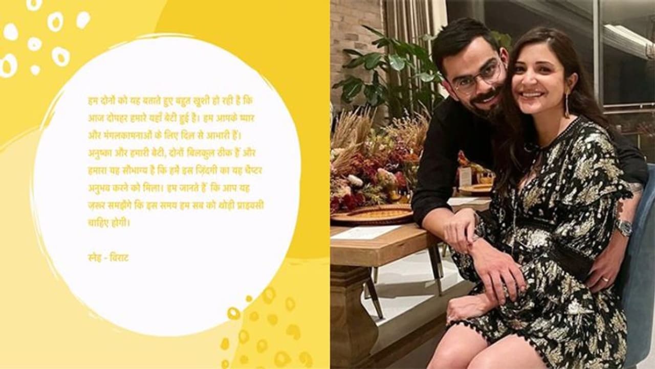 অনুষ্কা শর্মা এবং বিরাট কোহলির জীবনে এল ফুটফুটে কন্যাসন্তান। বিরাট নিজের টুইটার অ্যাকাউন্ট থেকে ইংরেজি ও হিন্দি ভাষায় লেখেন, "আজ বিকেলে আমাদের পরিবারে ফুটফুটে এক কন্যাসন্তানের আগমন হয়েছে। এত ভালবাসা, শুভেচ্ছা এবং প্রার্থনার জন্য আপনাদের অনেক ধন্যবাদ। অনুষ্কা এবং সদ্যোজাত দু’জনেই ভাল আছে।" এই খুশির খবরের অপেক্ষায় ছিল দেশবাসী। অবশেষে এল সেই সুখবর। মুম্বইয়ের এক বেসরকারি হাসপাতাল, ব্রিজ ক্যান্ডিতে জন্মগ্রহণ করল বিরাট-অনুষ্কার কন্যা সন্তান।
