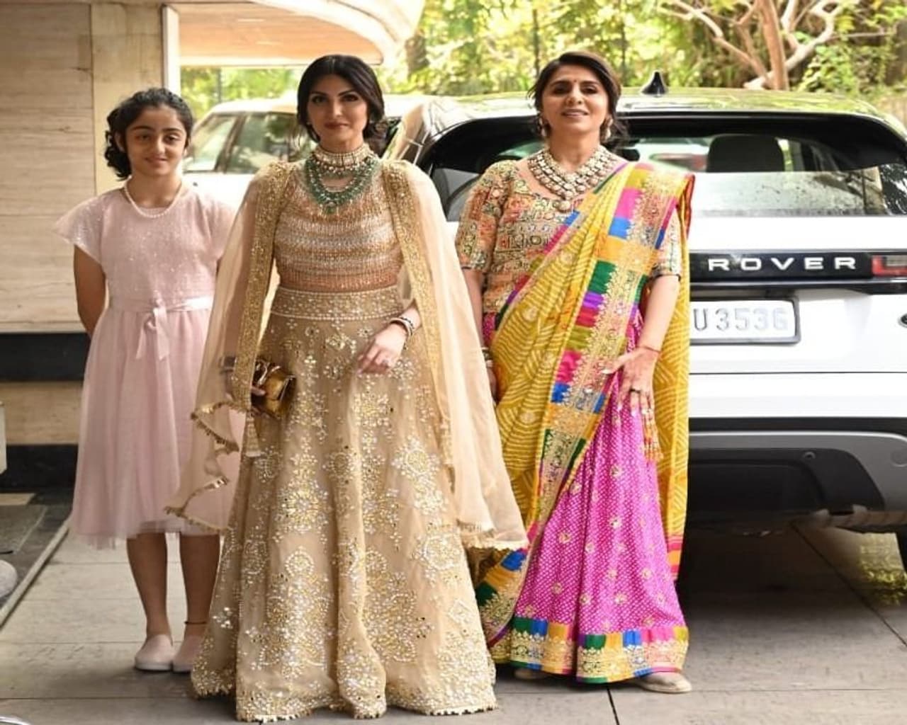 ছেলের বিয়েতে মোহময়ী লাগছিল মা নীতু কাপুরকে। টেক্কা দিচ্ছিলেন দিদি ঋদ্ধিমাও। সঙ্গে ছিল ঋদ্ধিমার মেয়ে। প্রত্যেকের আউটফিটই ছিল নজরকাড়া
