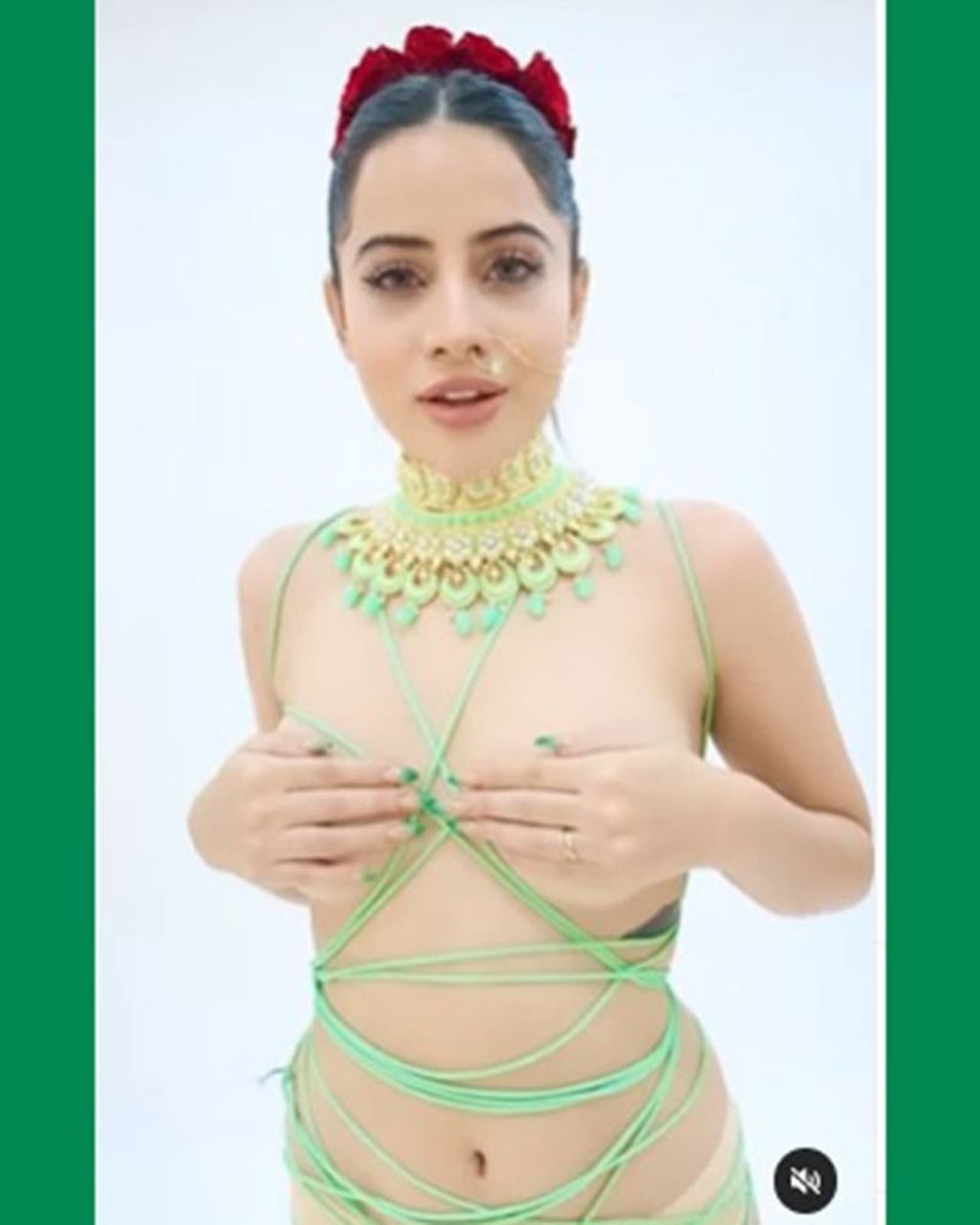 স্তনযুগল চেপে ধরে নেটপাড়ায় ঘুম কেড়ে নিলেন ফ্যাশনিস্তা উরফি। উন্মুক্ত শরীরে নেটপাড়ায় ঝড় তুললেন উরফি জাভেদ। সারা শরীরে হালকা সবুজ রঙের সুতো জড়িয়ে ন্যুড রঙের অন্তর্বাস পরে স্তনযুগল চেপে ধরেই ছবি পোস্ট করলেন উরফি। অর্ধনগ্ন শরীরে উরফিকে দেখে কালঘাম ছুটছে ভক্তদের।
