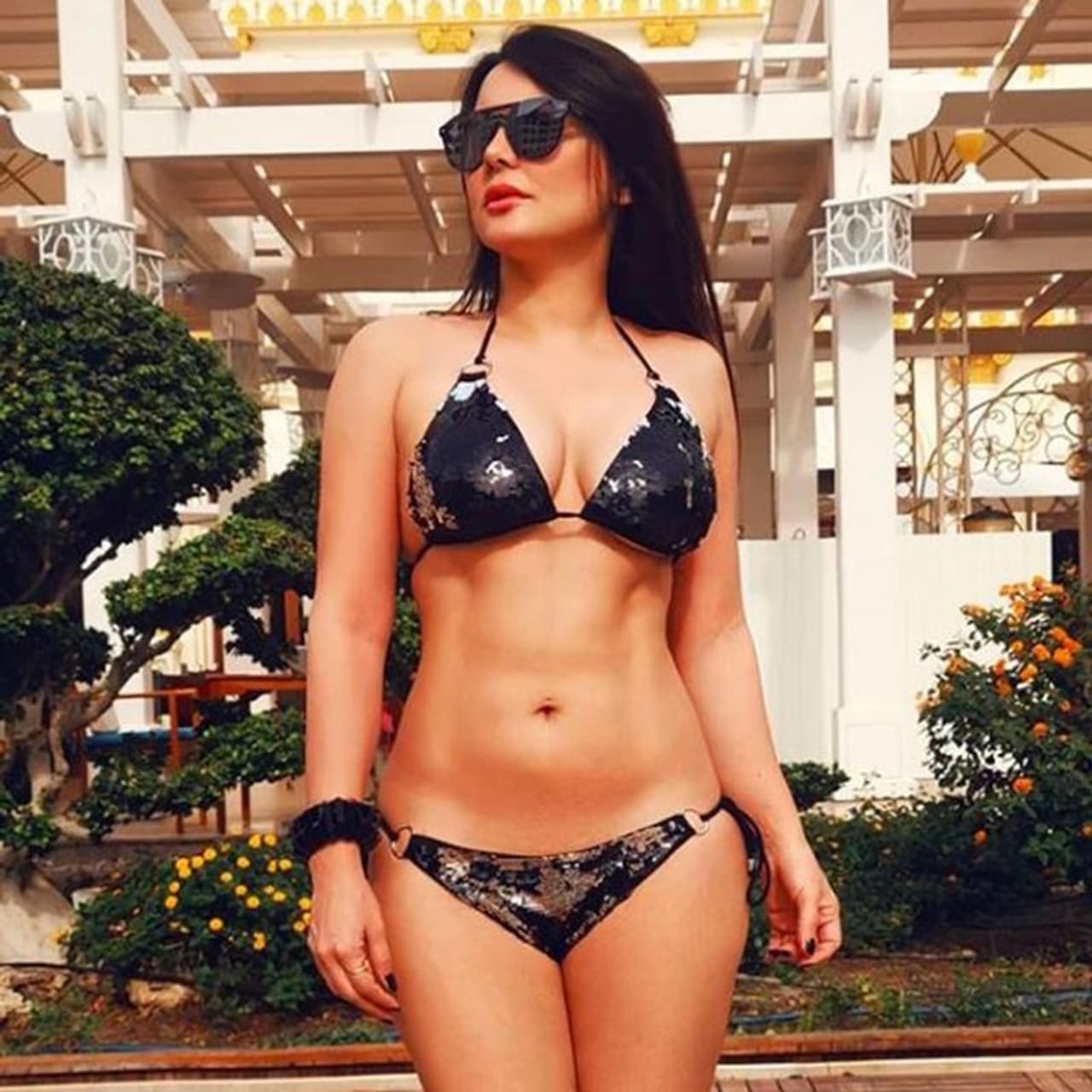 কালো রঙের চুমকি বসানো বিকিনি হোক বা অ্যানিমাল প্রিন্টের মোনোকিনি, সবেতেই যেন মিনিষার রূপ ঠিকরে পড়ছে।