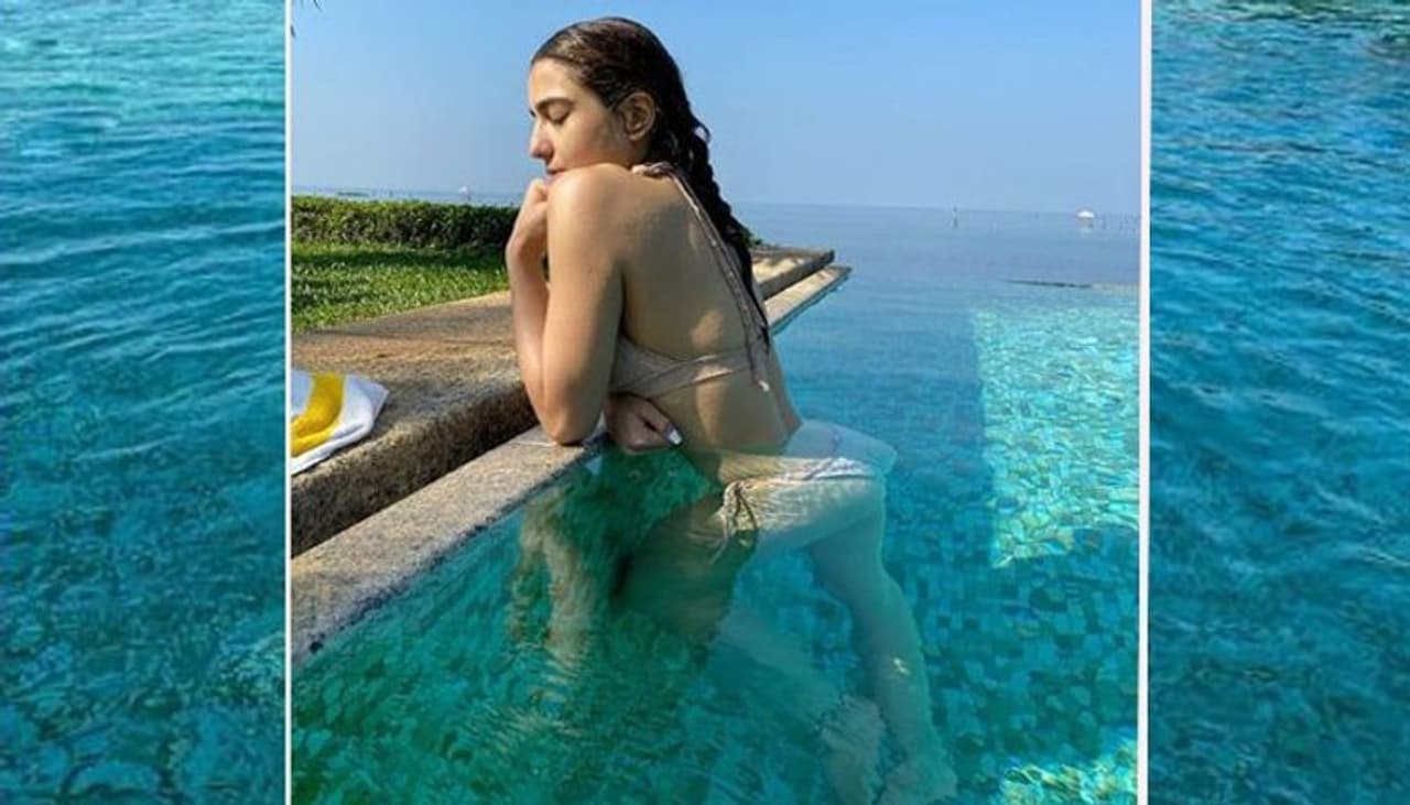 উষ্ণতার পারদ তুঙ্গে, বিকিনিতে স্যুইমিং পুলে নয়া অবতারে নবাব কন্যা সারা
