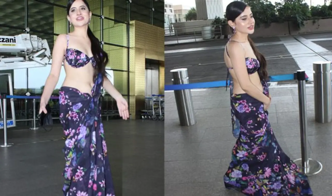 সদ্য নীল শাড়িতে দেখা গিয়েছে উরফিকে। নীল ফ্লোরাল প্রিন্টের শাড়ির সঙ্গে পরেছেন সাহসী ব্লাউজ। ব্লাউজ শব্দটা ঠিক খাটে না উরফির সাজের সঙ্গে। তা যেন দড়ির সমান। শুধু মাত্র স্তন ঢেকেছে সেই ব্লাউজ। পিঠ ও শরীরের বাকি অংশ উন্মুক্ত। দড়ির সাহায্যে যেন স্তন দুটি ঢেকেছেন শুধু।