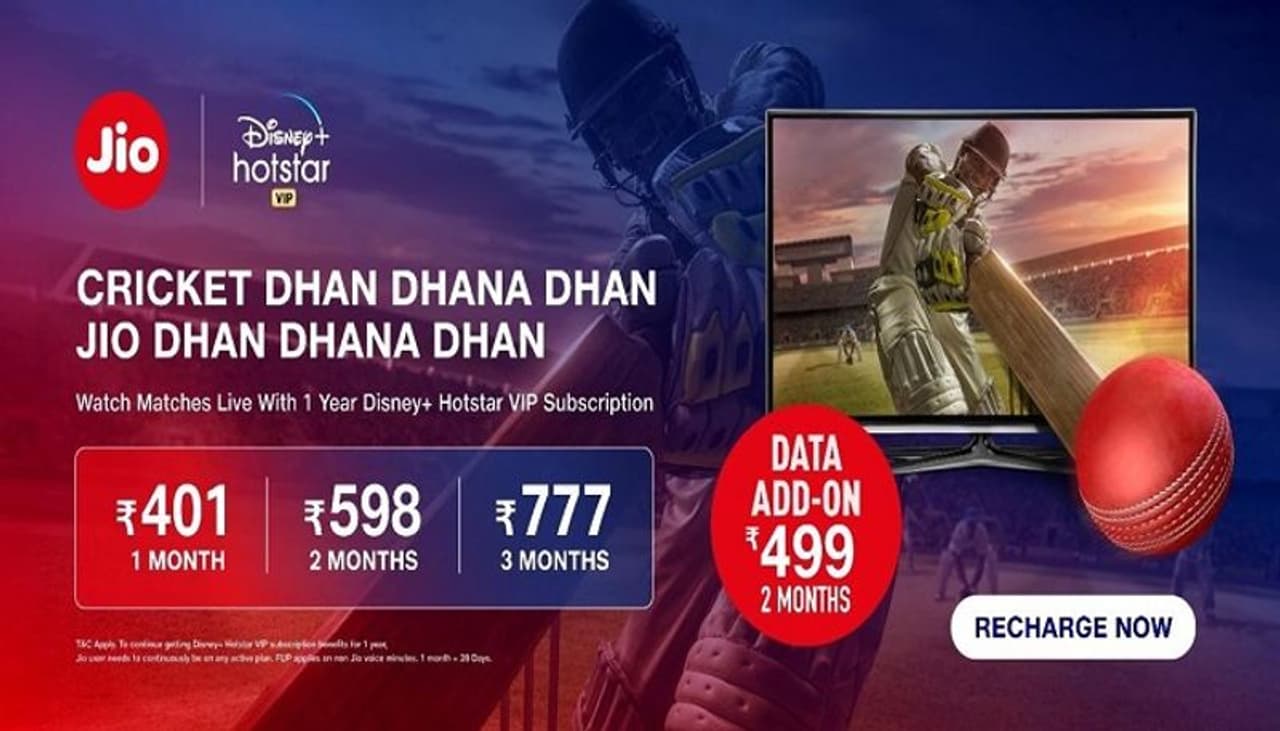 ক্রিকেট প্রেমীদের জন্য ৪০১ টাকার প্ল্যান নিয়ে এসেছে জিও। এই ক্রিকেট প্ল্যানে থাকবে প্রতিদিন ৩ জিবি ডেটা এবং আনলিমিটেড ভয়েস কল আর এসএমএসের সুবিধা। এর সঙ্গেই ১ বছরের জন্য ডিজনি প্লাস হটস্টারের ভিআইপি সাবস্ত্রিপশন। প্ল্যানটির বৈধতা ২৮ দিন।