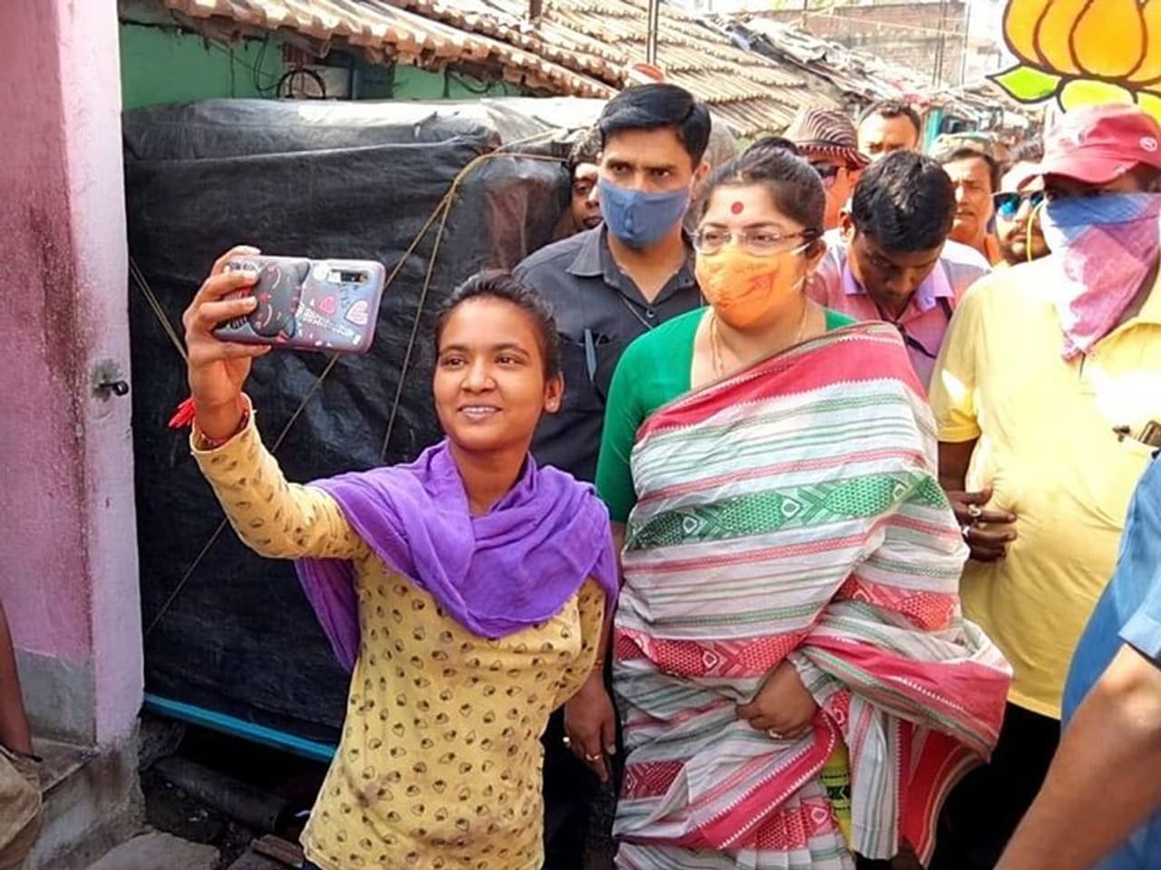 হুগলি জেলার চুঁচুড়া বিধানসভা কেন্দ্রের বিজেপি প্রার্থী লকেট চট্টোপাধ্যায়। ওই কেন্দ্রের তাঁর প্রতিপক্ষ তৃণমূল কংগ্রেসের অসিত মজুমদার ও সিপিএমের প্রণব ঘোষ।