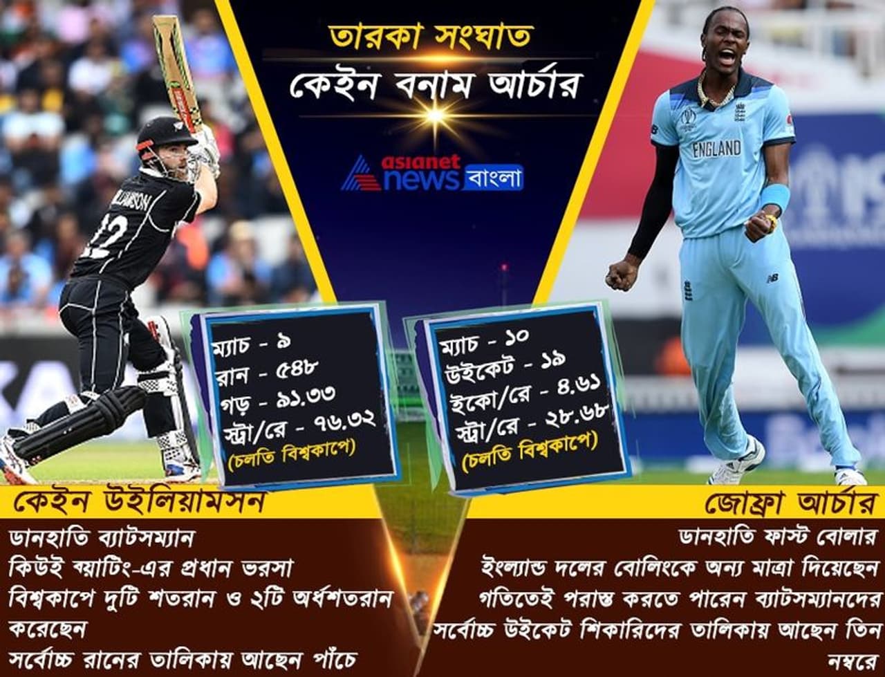 বিশ্বকাপে ম্য়াচের পর ম্যাচ দলের ব্যাটিংকে ভরসা দিয়েছেন কিউই অধিনায়ক। কাজটা করতে হবে আরও একবার। অন্যদিকে, বিশ্বকাপে নয়া সেনসেশন হয়ে উঠেছেন আর্চার। গতিতেই প্রতিপক্ষকে ভয় ধরিয়ে দিচ্ছেন। এই লড়াই যে জিতবে, তাঁর দল কিন্তু অনেকটাই এগিয়ে যাবে।