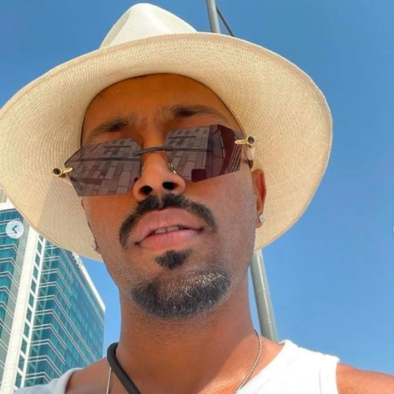 এই ফটোগুলিতে, হার্দিককে একটি সাদা রঙের স্লিভলেস টিশার্ট ও চোখে চশমা এবং মাথায় ক্যাপ পরে সেলফি তুলতে দেখা যায়। ছবিটি পোস্ট করে তিনি লিখেছেন - আউট অ্যান্ড অ্যাবাউট।