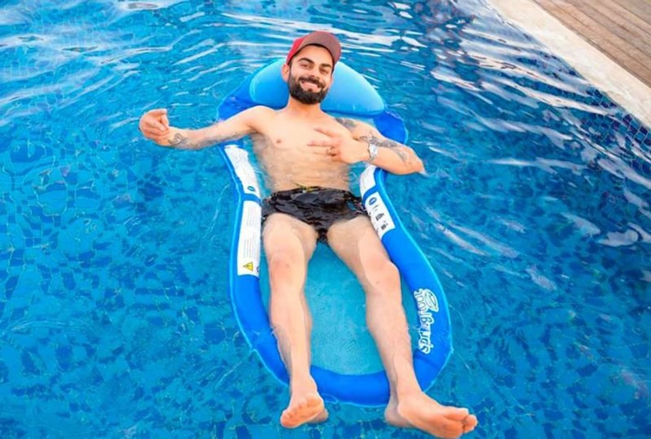 সুইমিং পুলে সময় কাটানোর প্রতিটি মুহূর্ত চুটিয়ে উপভোগ করলেন রয়্যাল চ্যালেঞ্জার্সের ব্যাঙ্গালোরের অধিনায়ক।