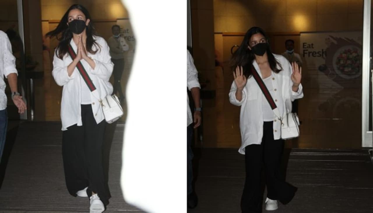বিমানবন্দরে , আলিয়াকে একটি ওভার সাইজ্ড সাদা শার্ট এবং প্যান্ট পরা দেখা যায় যেখানে শামশেরা অভিনেতা একটি চেকারযুক্ত শার্ট এবং জিন্স পরেছিলেন।