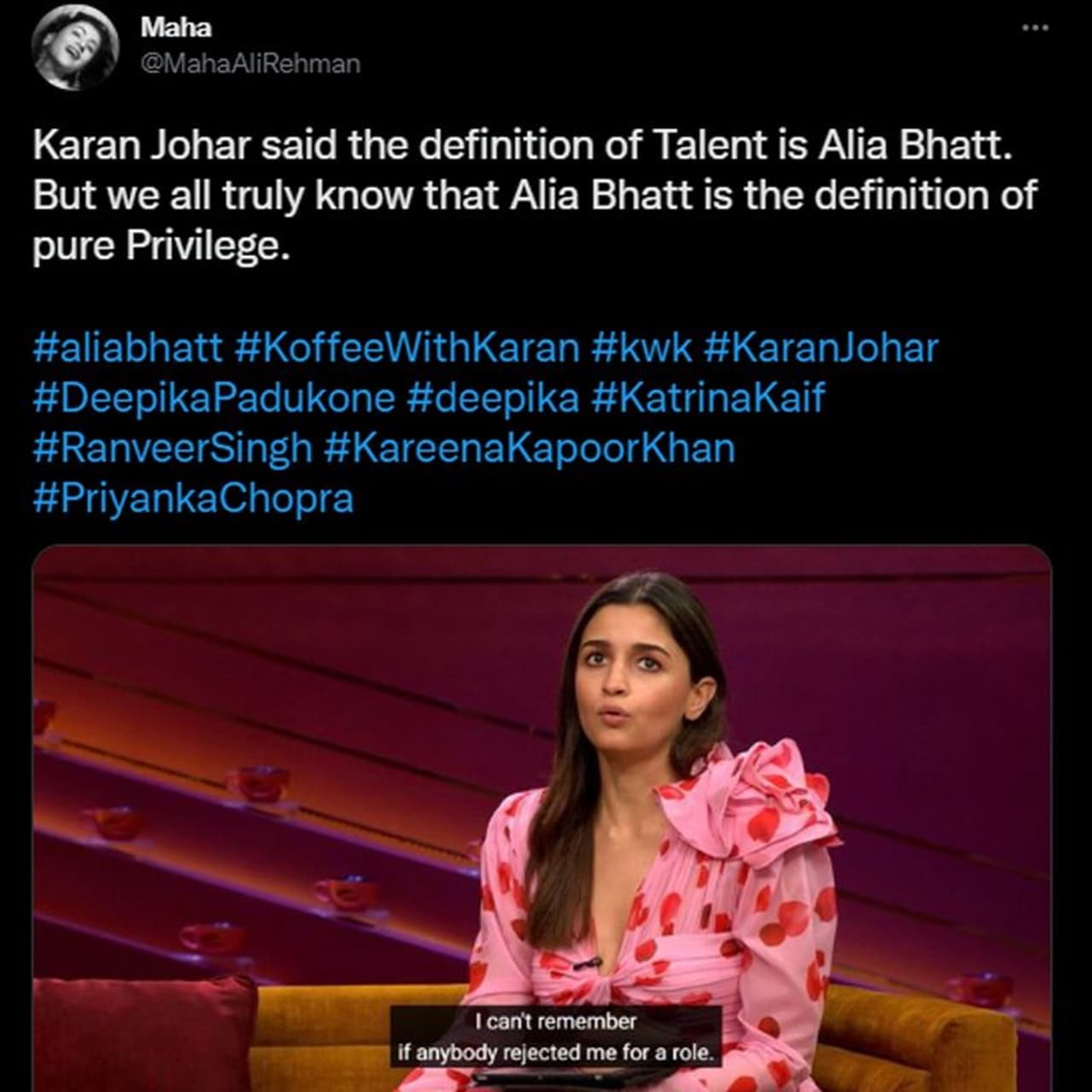 ইভেন্টটি দেখার সময়, রণবীর আলিয়া ভাটকে একটি স্বজনপ্রীতি শিশু বলে অভিহিত করেছিলেন যখন করণ জোহর তাকে গেমটিতে সমর্থন করেছিলেন এবং তাকে জয় দিয়েছিলেন যদিও তিনি দাবি করেছিলেন যে তিনি তার চেয়ে ভাল করেছেন।