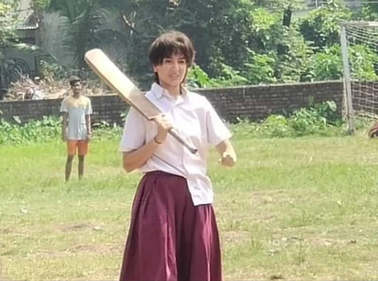 শুধুই কলকাতার ইডেনে গার্ডেনে শ্যুট করেই থামেননি তিনি। টিমের সঙ্গে তিনি পৌঁছে গিয়েছেন হাওড়া আন্দুলেও। সেখানে আন্দুল রাজবাড়ির মাঠে তাঁর স্কুলবেলা ক্যামেরাবন্দি হয়েছে। সাদা শার্ট, মেরুন স্কার্ট পরা অনুষ্কা তখন স্কুল-কিশোরী। স্কুলের ফাঁকে মাঠে তাঁর বয়সী ছেলেদের জুটিয়ে চুটিয়ে ক্রিকেট খেলছেন। খেলার নেশায় শার্টের একটি দিক উঠে ঝুলছে স্কার্টের বাইরে। পর্দার ‘ঝুলন’-এর সে দিকে হুঁশই নেই! তিনি কাঁধে ব্যাট নিয়ে রাজার ভঙ্গিমায়।