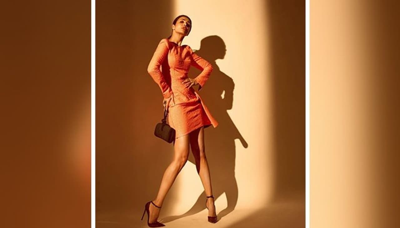 কমলা রঙের মিনি ড্রেসে নিজের উন্মুক্ত টোনড পা প্রদর্শন করছেন মালাইকা