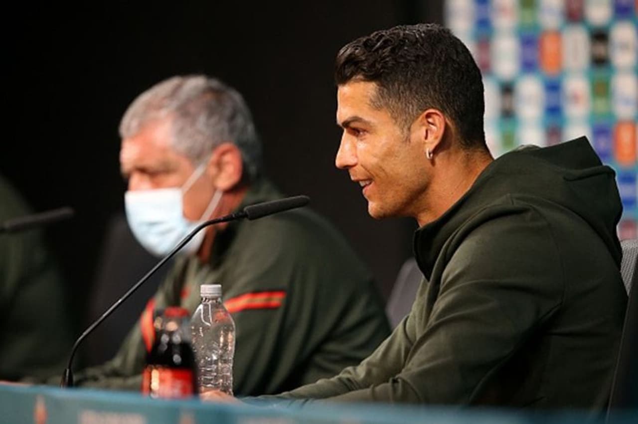হাঙ্গেরি ম্যাচের আগে সাংবাদিক বৈঠকে আসেন রোনাল্ডো। তাঁর সামনে রাখা ছিল দু’টি কোকা-কোলার বোতল। সেগুলি সরিয়ে রেখে জলের বোতল রাখেন তিনি।