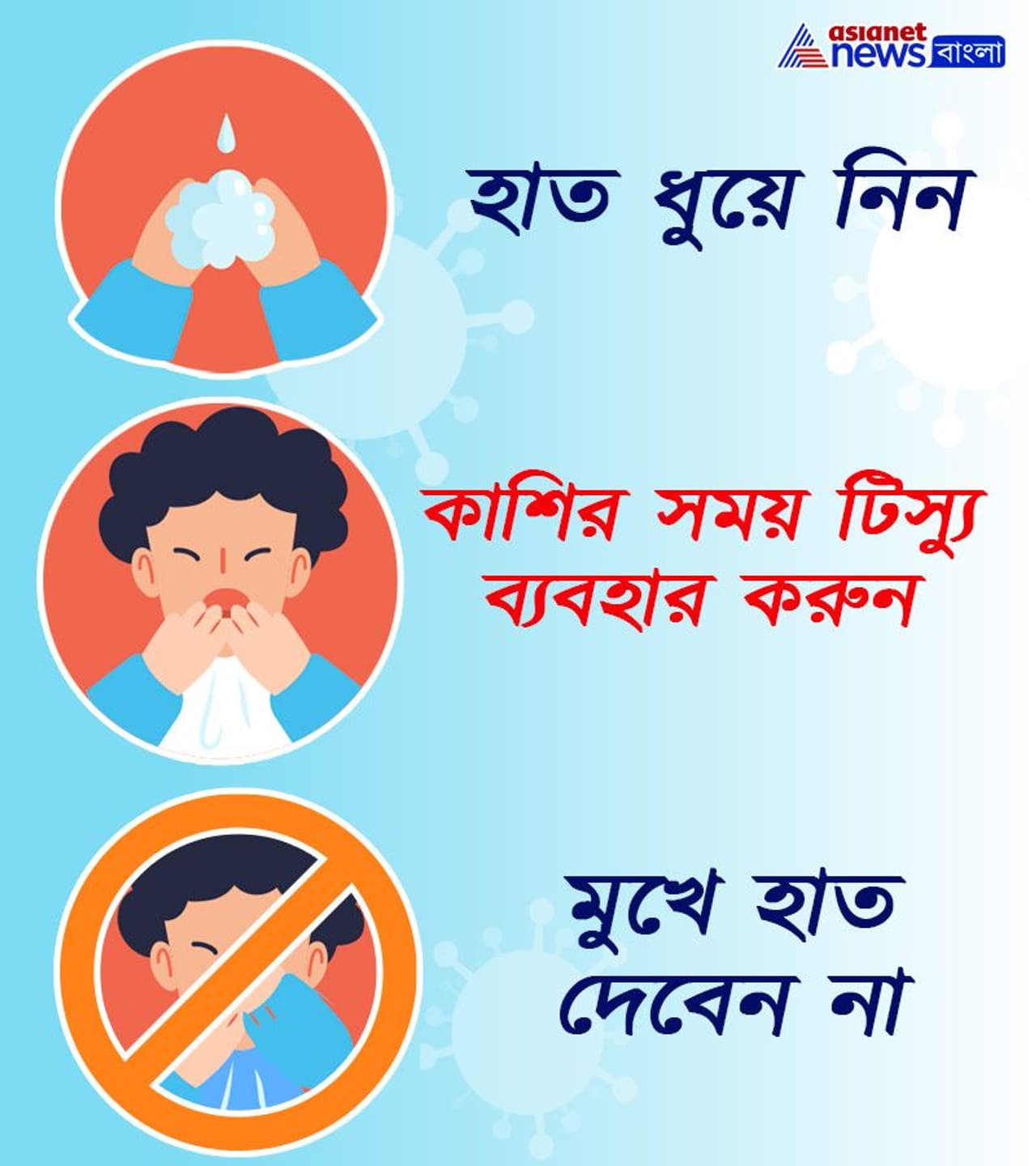 হাত ধুয়ে নিন, কাশির সময় টিস্যু ব্যবহার করুন, মুখে হাত দেবেন না