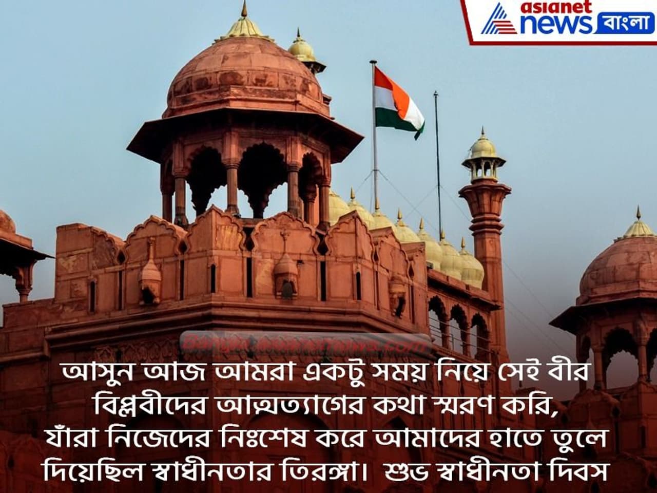 আসুন আজ আমরা একটু সময় নিয়ে সেই বীর বিপ্লবীদের আত্মত্যাগের কথা স্মরণ করি, যারা নিজেদের নিঃশেষ করে আমাদের হাতে তুলে দিয়েছিল স্বাধীনতার তিরঙ্গা। শুভ স্বাধীনতা দিবস। – এমন বার্তা পাঠান সকল পরিচিত ব্যক্তিকে। এই দিনের শুরু হোক অন্য রকম। সকল চেনা পরিচিতকে জানান শুভেচ্ছা।