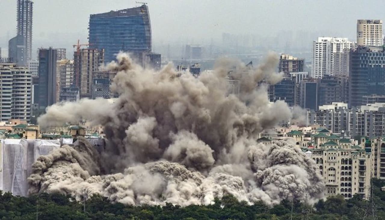 তিন হাজার কিলো ৭০০ গ্রাম বিস্ফোরণ দিয়ে উড়িয়ে দেওয়া হল নয়ডার টুইন টাওয়ার। রিয়েলিটি এস্টেট ফার্ম সুপারটেক লিমিটেডের তৈরি টুইন টাওয়ার। ৯ সেকেন্ডেরও কম সয়মে ধুলোয় মিশে যায় ৭০ কোটি টাকার এই দৈত্যাকার জোড়া বিল্ডিং।