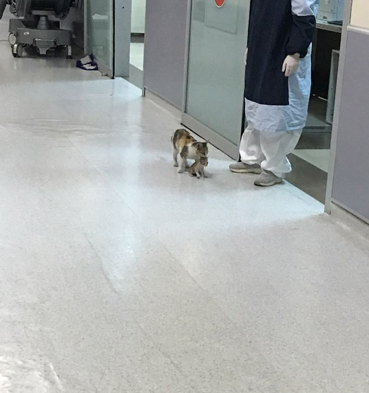ভাগ্য ভালো যে, বিড়ালটি একেবারে সঠিক জায়গাতেই তার সন্তানকে নিয়ে হাজির হয়েছে। ঠিক হাসপাতালটির ডাক্তার নার্সদের কাছেই বিড়ালটি তার শিশুকে মুখে করে নিয়ে যায়।