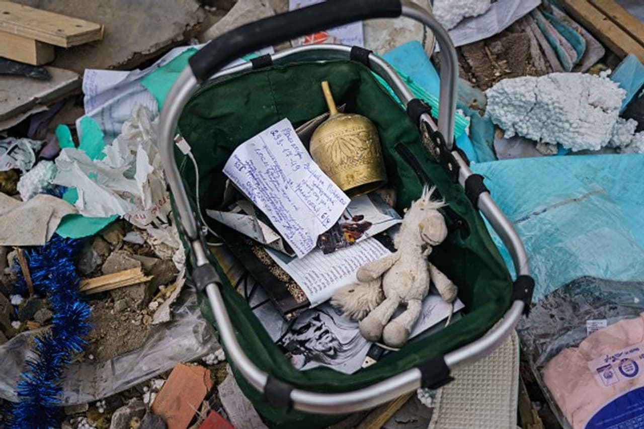গত শনিবার, রুশ বিমান হামলায় ইউক্রেনের মার্খালিভকার বহু বসতবাড়ি ক্ষতিগ্রস্ত হয়। এরকমই এক বাড়ির ধ্বংসস্তুপ থেকে রক্ষা পাওয়া ব্যক্তিগত জিনিসপত্র সংগ্রহ করছেন সেই বাড়ির মালিক। যতটুকু বাঁচানো যায়।