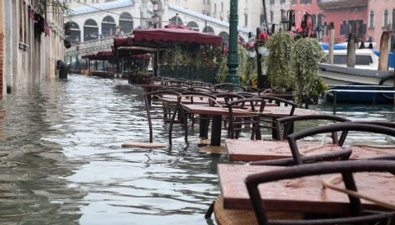 বন্যার কবলে ইতালির ভাসমান শহর ভেনিস। জলে ডুবে গিয়েছে শহরের অধিকাংশ এলাকা। বন্যা পরিস্থিতির সঙ্গে ঝোড়ো হাওয়া বিপাকে ফেলেছে স্থানীয়দের। পর্যটকদের ভোগান্তিও চরমে পৌঁচেছে। বড় জোয়ার আসার কারণে ভেসে গিয়েছে শহরের ৭০ ভাগেরও বেশি এলাকা। বিখ্যাত সেন্ট মার্কস স্কয়ার জলের তলায়। শহরের উঁচু ব্রিজগুলি ছাড়া পুরো ভেনিসই জলের তলায়। ভেনিসের সৌন্দর্যের টানে প্রতিবছরই বহু পর্যটকের আগমণ হয় এই শহরে। জলই এই শহরের সৌন্দর্য। কিন্তু বন্যা হলে যে অবস্থা কতটা খারাপ হয় তা বুঝতে পাচ্ছেন ভেনিসবাসী।  গত ৫০ বছরে এমন অবস্থা হয়নি এই শহরের। এরজন্য সরাসরি আবহাওয়ার পরিবর্তনকেই দায়ি করছেন স্থানীয়রা।