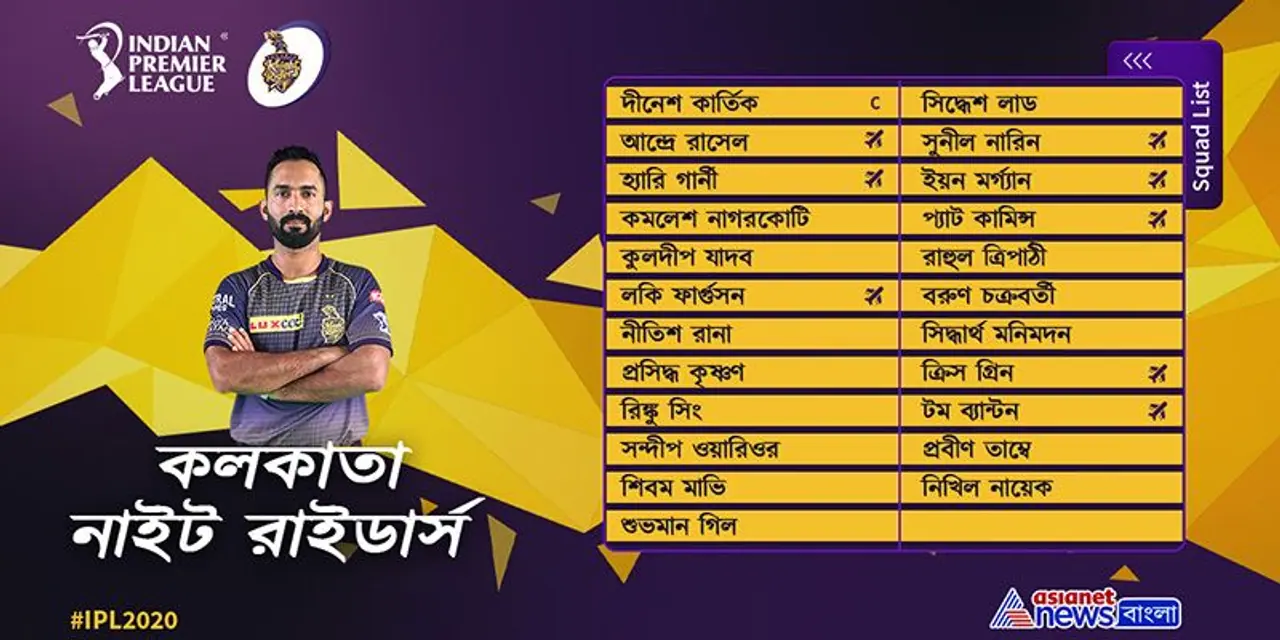 কলকাতা নাইট রাইডার্স- টিম কলকাতা এবার বেশকিছু রদবদল হয়েছে। ক্রিস লিনকে তারা ছেড়ে দিয়েছে। ফলে ওপেনিং-এ লিনের ধামাকা কলকাতার ভক্তরা দেখতে পাবেন না। এছাড়াও কলকাতার দলের অন্যতম আকর্ষণ ইয়ান মর্গ্যানের ফিরে আসা। মাঝখানে মর্গ্যানকে ছেড়ে দিয়েছিল কলকাতা। ইংল্যান্ডের অধিনায়ক এবার কেকেআর-এর হয়ে মাঠে নামছেন। তবে, কেকেআর এবার চমক দিয়েছে প্যাট কামিন্সের দর। ১৫.৫ কোটি টাকা দিয়ে অস্ট্রেলিয়ান পেসার-কে তুলে নিয়েছে শাহরুখ খানের দল।