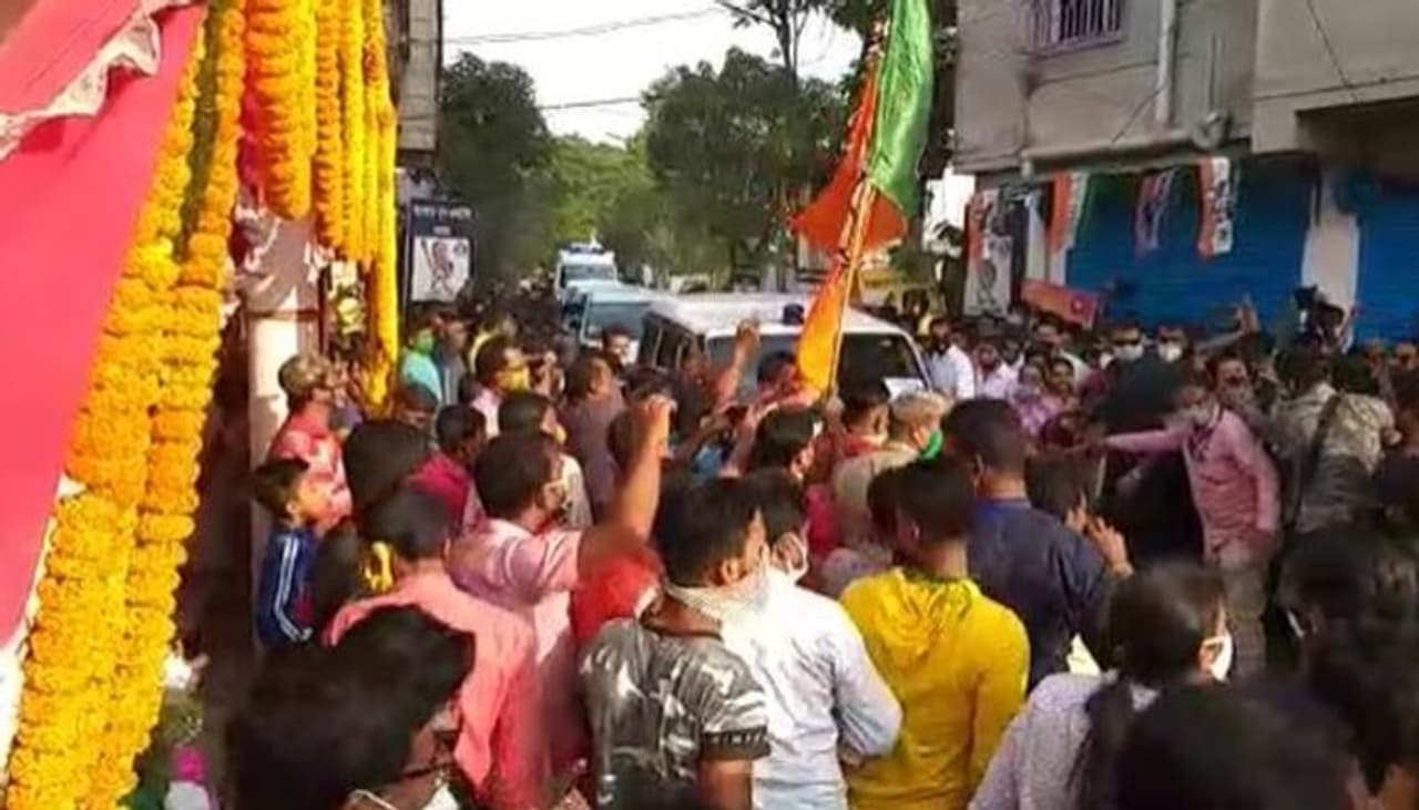 দক্ষিনেশ্বরে মায়ের মন্দিরে পুজো দিয়েই শুক্রবারের সফর শুরু করলেন অমিত শাহ। সেখানে অমিত শাহকে কপালে তিলক পরিয়ে স্বাগত জানান অগ্নিমিত্রা পাল। এরপর পৌছে গেলেন অজয় চক্রবর্তীর বাড়ি। তারপর নিউটাউনের গৌরাঙ্গনগর হয়ে জ্যোতিনগরে হরি গুরুচাঁদ মন্দিরে গেলেন স্বরাষ্ট্রমন্ত্রী অমিত শা। সঙ্গে বাবুল সুপ্রিয়, রাহুল সিনহা, কৈলাশ বিজয়বর্গীয়, দিলীপ ঘোষ সহ শীর্ষ স্থানীয় বিজেপির নেতা। সকলেই মেঝে বসে মন খেলেন মতুয়া সম্প্রদায়ের নবীন বিশ্বাসের বাড়িতে।