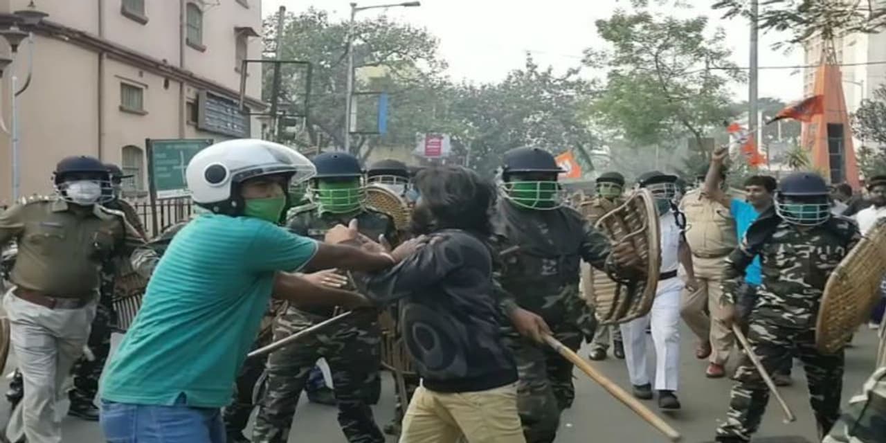 বৃহস্পতিবার বিকেল চারটে নাগাদ পঞ্চাননতলা বিজেপি অফিস থেকে প্রতিবাদ মিছিল শুরু করে বিজেপি কর্মী সমর্থকরা। মিছিল জেলাশাসকের বাংলোর সামনে এলে আটকে দেয় পুলিশ। সেখানেই পুলিশ-বিজেপি কর্মী ধস্তাধস্তি শুরু হয়।