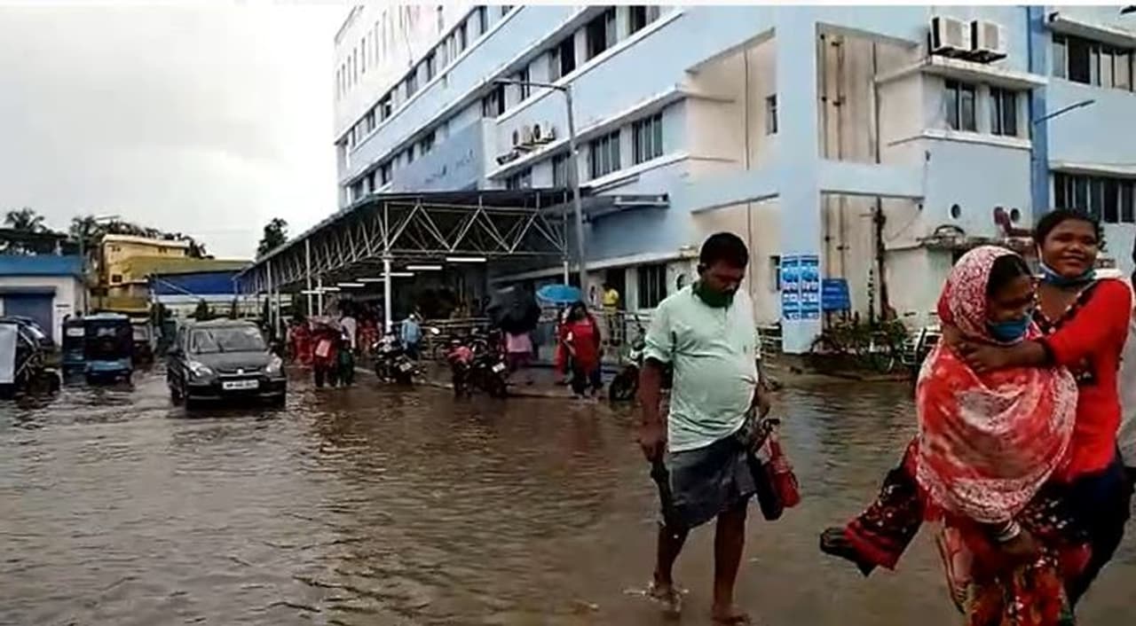টানা বৃষ্টির ফলে জলমগ্ন হয়ে পড়েছে ডায়মন্ডহারবার সুপার স্পেশালিটি হাসপাতাল চত্বর। এর ফলে সমস্যায় পড়েছেন রোগী ও রোগীর আত্মীয়রা। হাঁটু জল পেরিয়ে হাসপাতালে যেতে হচ্ছে তাঁদের।