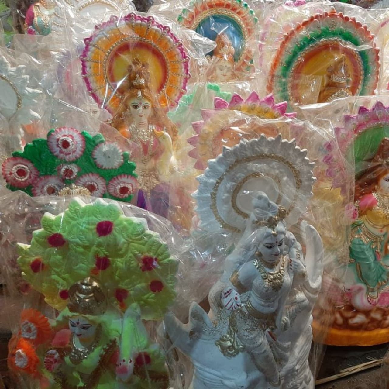 তবে শেষ বেলায় বিক্রি পাট্টা তেমন থাকায় কিছুটা কমল প্রতিমার দাম। একদম ছোট ঠাকুরের দাম কমে হল ১০০ টাকা।
