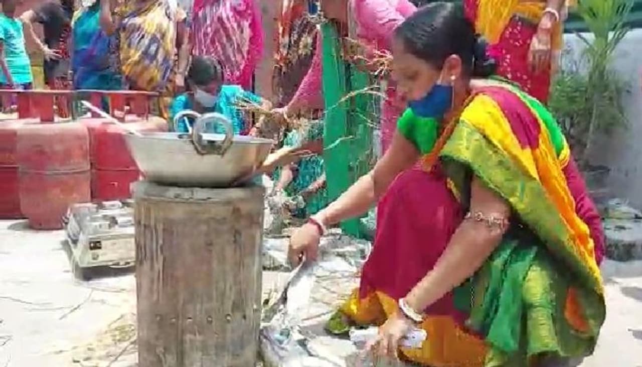 মাটির উনুন জ্বালিয়ে জলে রান্না, দেখুন শহর জুড়ে তৃণমূলের বিক্ষোভের অভিনব সব ছবি