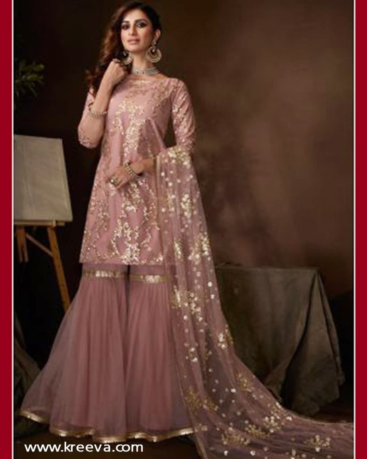 ল্যাভেন্ডার এবং গোল্ডেন রঙের জড়ির কাজের সারারা ড্রেস
