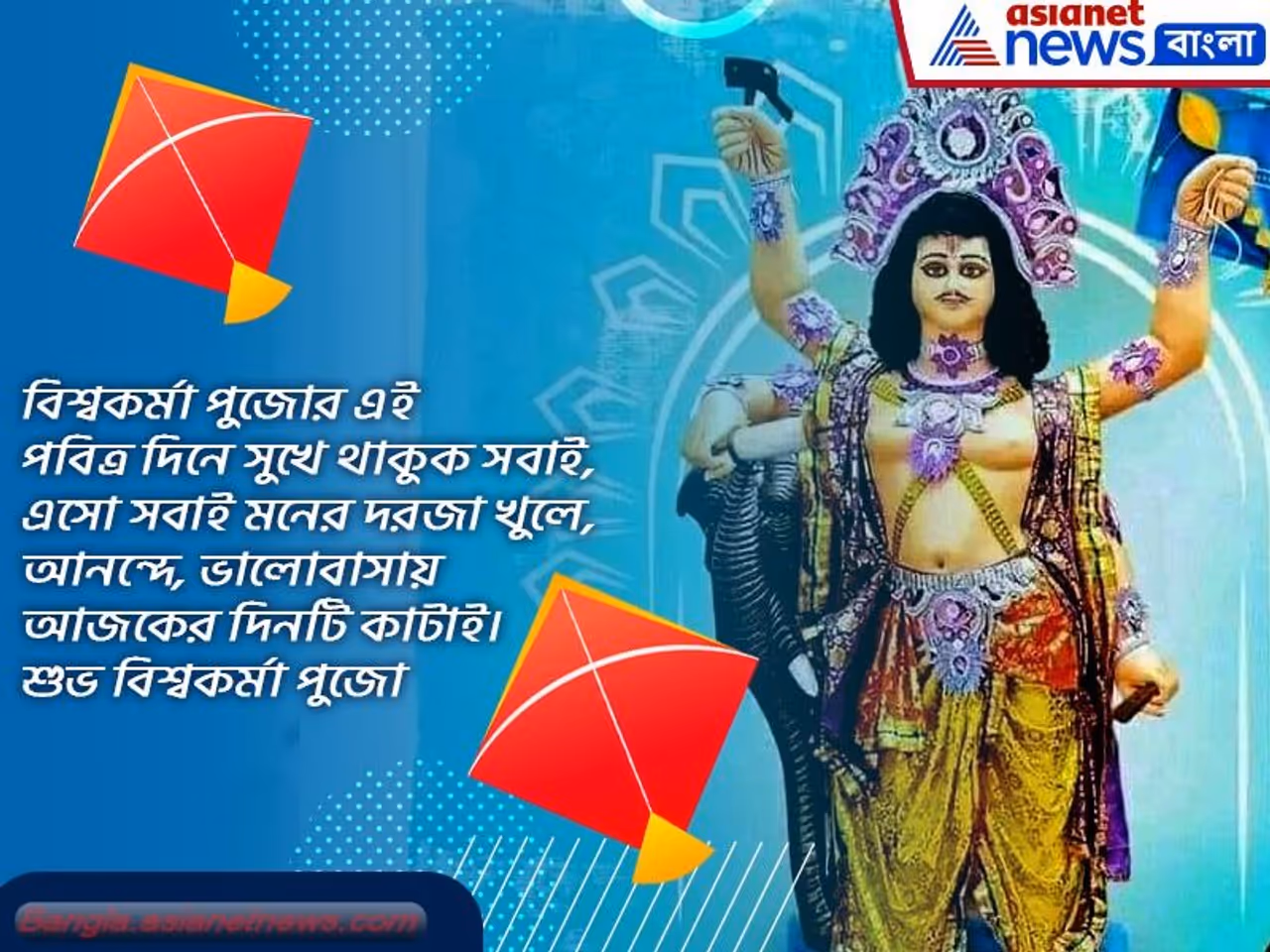 হে ভগবান বিশ্বকর্মা আমাদের জীবনের প্রতিটি উদ্যোগকে আশীর্বাদ করো ও প্রতিটি কর্মক্ষেত্রে সফল হতে সাহায্য করো। - বিশুদ্ধ সিদ্ধান্ত পঞ্জিকা মতে, বিশ্বকর্মা পুজোর তিথি (ভাদ্র কৃষ্ণপক্ষ) সপ্তমী দিবা ঘটিকা ২টো ১৫ মিনিট পর্যন্ত। আবার গুপ্ত প্রেস পঞ্জিকা মতে, তিথি (ভাদ্র কৃষ্ণ পক্ষ) সপ্তমী ঘটিকা ৩টে ৩ মিনিট ২০ সেকেন্ড পর্যন্ত। এই শুভ তিথিতে সকলকে জানান বিশ্বকর্মা পুজোর শুভেচ্ছা।