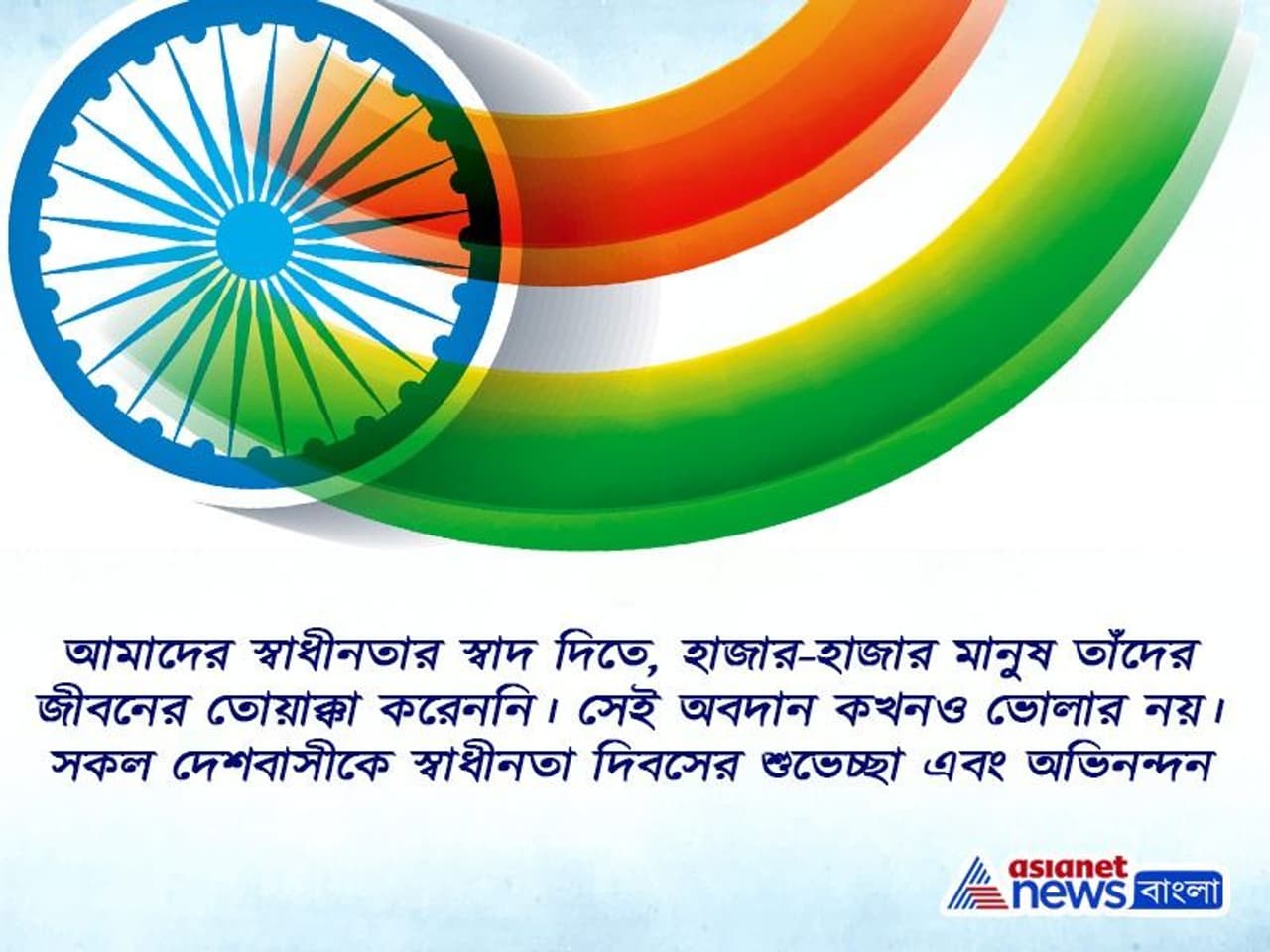 আমাদের স্বাধীনতার স্বাদ দিতে, হাজার-হাজার মানুষ তাঁদের জীবনের তোয়াক্কা করেননি। সেই অবদান কখনও ভোলার নয়। সকল দেশবাসীকে স্বাধীনতা দিবসের শুভেচ্ছা এবং অভিনন্দন