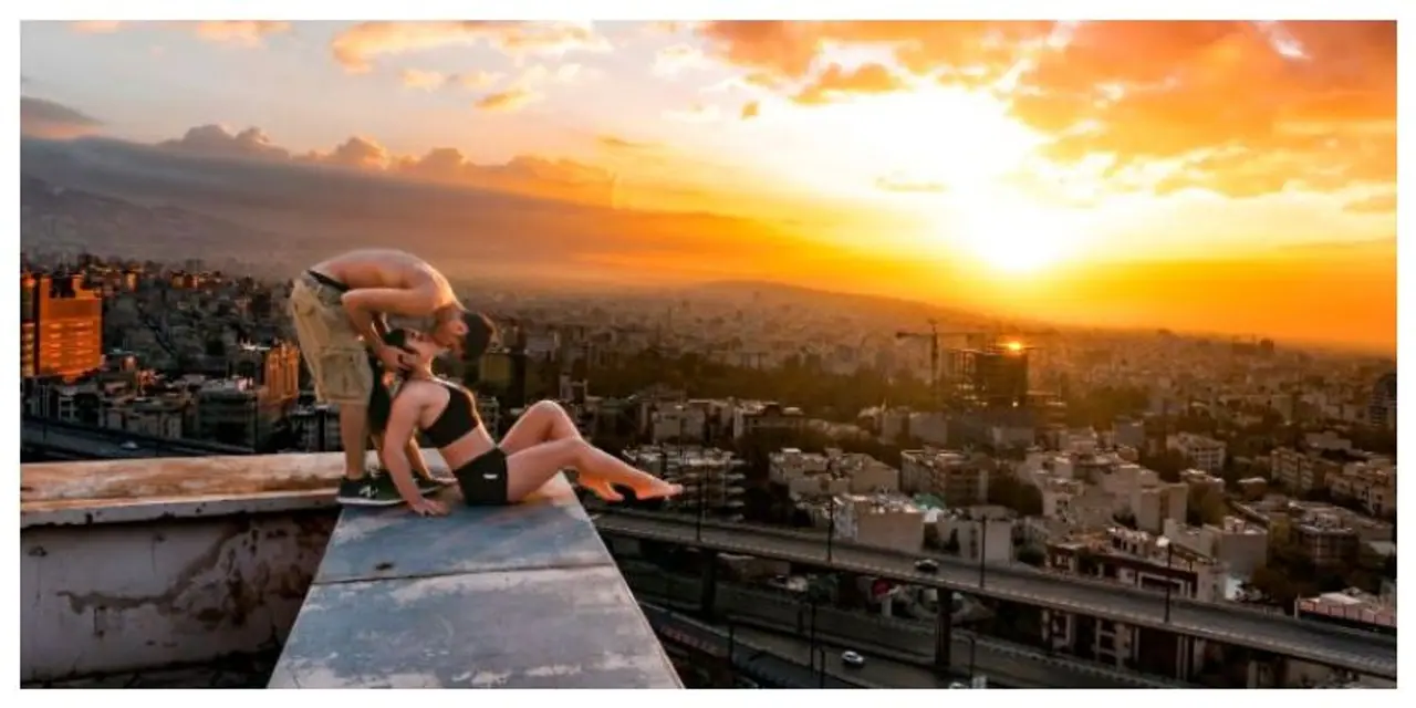 পার্কোর খেলাটির জন্ম ৯০-এর দশকে ফ্রান্সে। যেখানে দুর্গম স্থানে অত্যন্ত ঝুঁকি নিয়ে বিভিন্ন স্টান্ট শেখানো হয়। বিশেষ করে শহরের উঁচু বিল্ডিংয়ের ছাদের একেবারে শেষ প্রান্তে দাঁড়িয়ে স্টান্ট করতে হয়। এই স্পোর্টস তেহরানেও বেশ ভালই জনপ্রিয়। সে ছবিই ধরা পড়েছে ইরানের বিখ্যাত পার্কোর অ্যাথলিট আলিরেজার পেজে চোখ রাখলে। যেখানে দেখা যাচ্ছে, কীভাবে ছাদের পাঁচিল থেকে শূন্যে পা ঝুলিয়ে ভয়ংকর পজিশনে বসে চুম্বনরত যুগল। এছাড়াও নিজের অন্যান্য সতীর্থদের সঙ্গে বিভিন্ন ধরনের স্টান্ট করেন আলিরেজা।