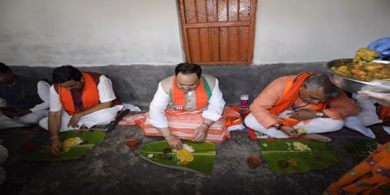 এরপর, বেলা একটা নাগাদ কৃষক পরিবারে গিয়ে মধ্য়াহ্নভোজ করেন নাড্ডা। নিজেকে কৃষক দরদি প্রমাণ করতে সেখানেই মধ্য়াহ্নভোজন সারেন তিনি। জগনানন্দপুর গ্রামের বাসিন্দা মথুরা মণ্ডলের বাড়িতে দুপুরের খাওয়ার খান দিলীপ থেকে নাড্ডালরা।