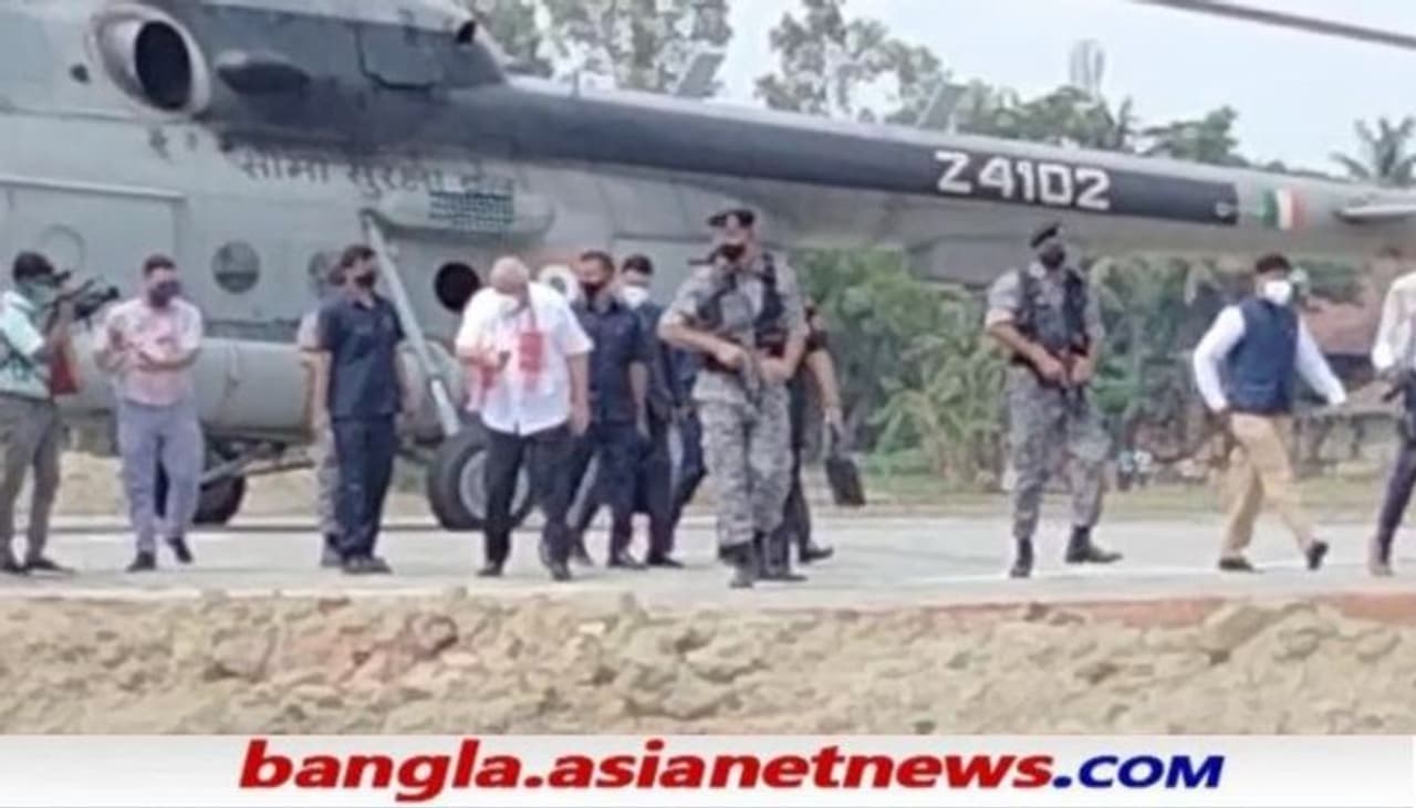 এদিন সকালে হেলিকপ্টারে করে আক্রান্তের পরিবার এবং এলাকা পরিদর্শনে নন্দীগ্রামে পৌছন রাজ্যপাল।