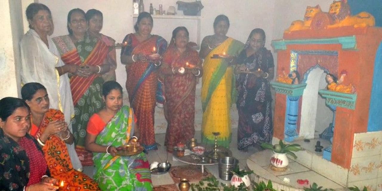 একদিনের দুর্গাপুজো, দেবীর বোধনের পর সিঁদুর খেলায় মাতেন মহিলারা
