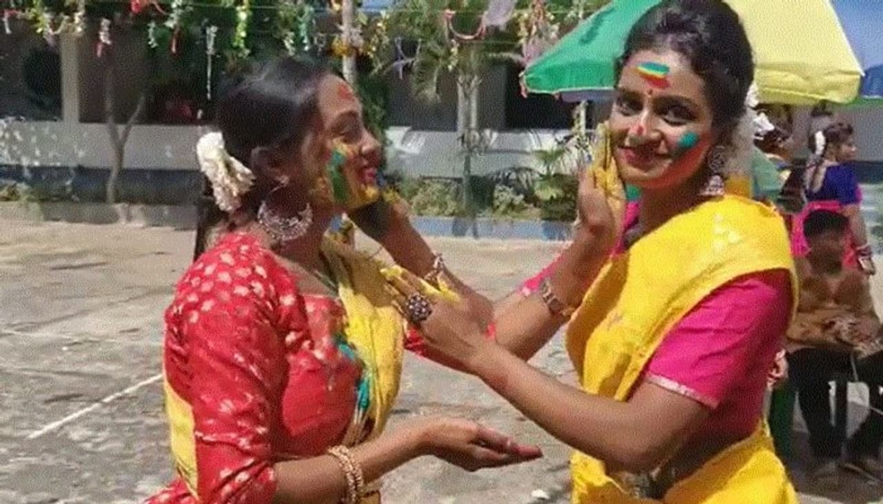 দোলের আগেই বসন্ত উৎসব পালন বাংলায়। একদিকে বেঞ্চে সাজানো রয়েছে রংবেরঙের আবির,পলাশ ফুলের ডালি । ছাত্র-ছাত্রীরা একে অপরকে আবীর দিয়ে রাঙিয়ে দিচ্ছে ,কেউ দলবেঁধে নাচ করছে।