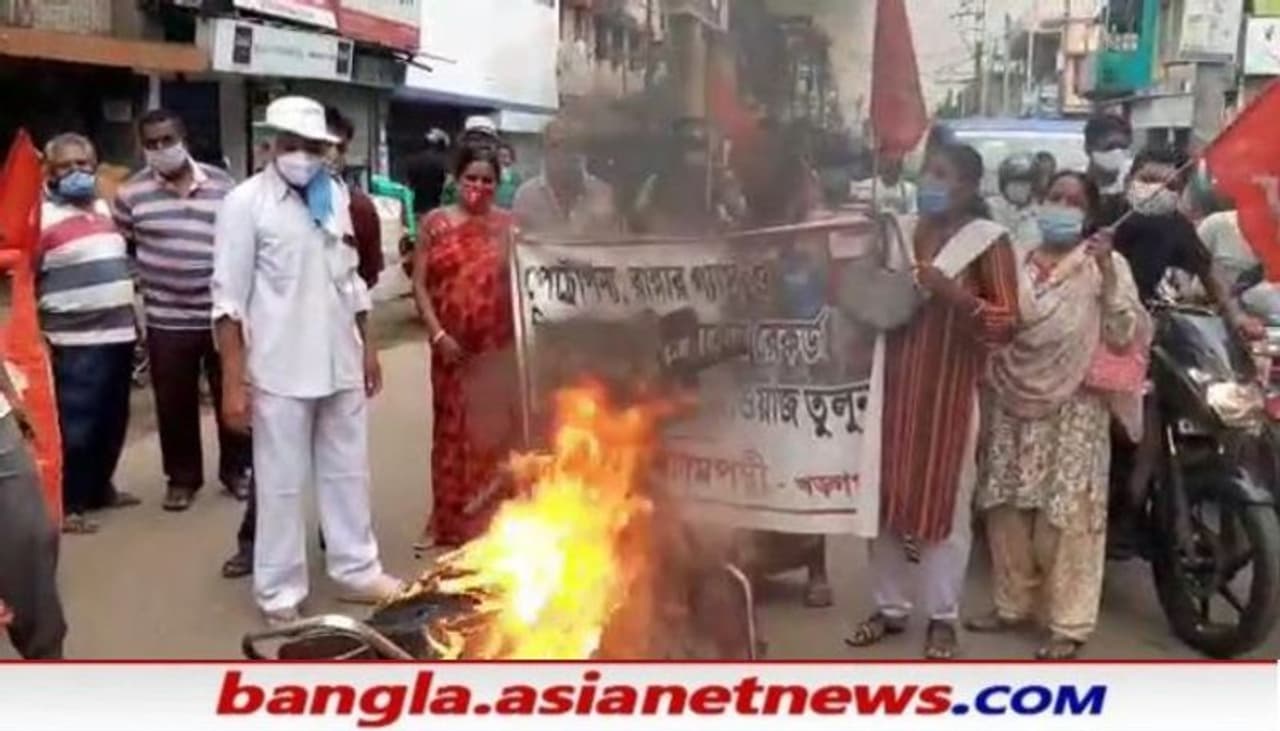 পেট্রোল-ডিজেলের মূল্যবৃদ্ধিতে বাইকে আগুন লাগিয়ে প্রতিবাদে বামেরা, দেখুন ছবি