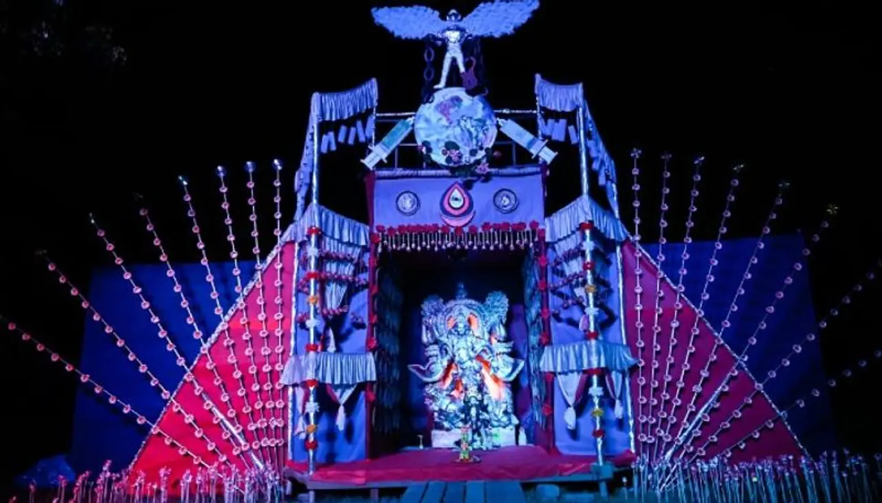 'সঙ্কট  দূর করে,শুভ্রালোকের দিকে যাত্রাপথে;সমগ্র বিশ্ব তথা মানবসমাজের হিতার্থে  কঠিন সময়ের বিবর্তন ও আবর্তনের মধ্যে দিয়েই,কালের নিয়মে মাতৃশক্তির আবাহন এভাবেই মহাজাগতিক 'পরিত্রাণ'-র গল্প বলবে,আমাদের এই বছরের পুজো মন্ডপ,' জানাল নিমতা সার্বজনীন শ্যামাপূজা কমিটি।