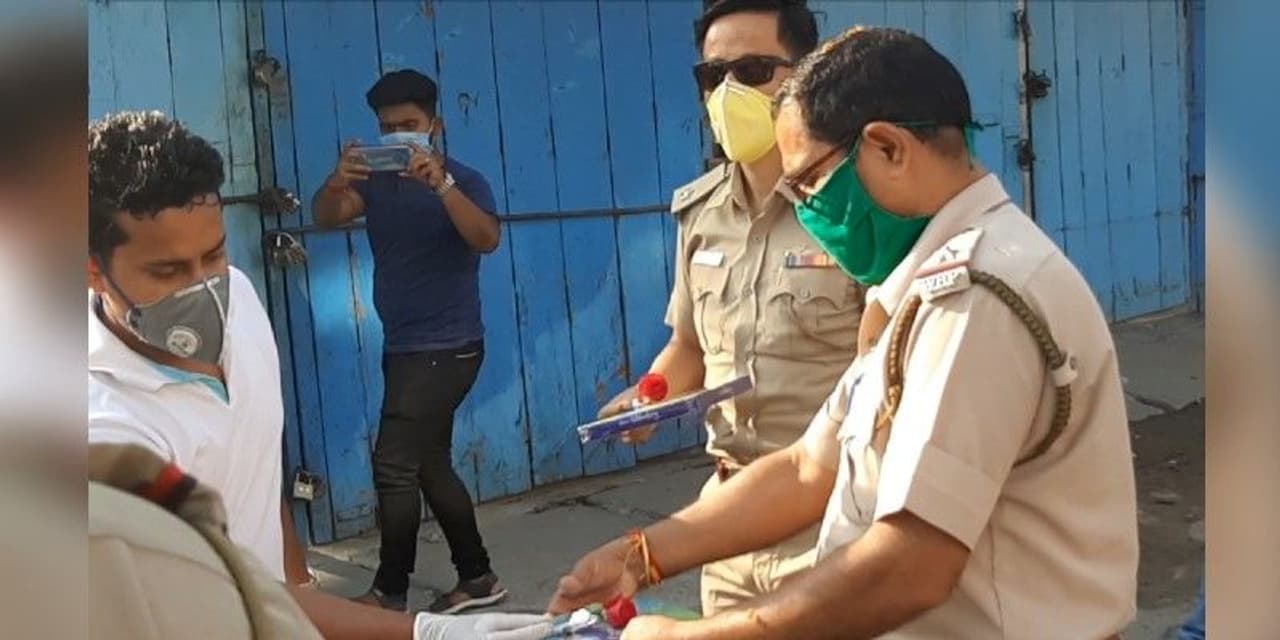 নিরলস পরিশ্রমের জন্য পুলিশকর্মীদের সম্মান জানালেন রায়গঞ্জের কয়েকজন যুবক। দেওয়া হল ফুল ও চকোলেট।