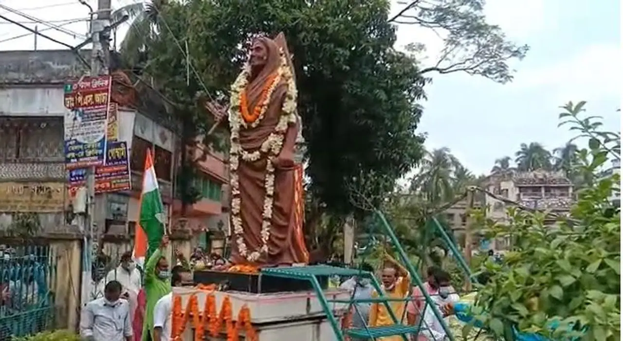 বিজেপির মিছিল থেকে ‘ভারত মাতা কি জয়’ স্লোগান ওঠে। পাল্টা ‘গদ্দার হঠাও’ স্লোগান দিতে থাকেন তৃণমূল কর্মীরা। মুহূর্তে উত্তেজনা ছড়ায়। তবে নেতৃত্বের তৎপরতায় সংঘর্ষের পরিস্থিতি তৈরি হয়নি। পরিস্থিতি সামাল দেয় পুলিশ। তবে শেষ পর্যন্ত নির্বিঘ্নেই মূর্তিতে মাল্যদান করেন দু'পক্ষই।