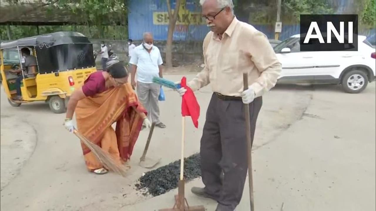 হায়দরাবাদের বাসিন্দা গঙ্গাধর তিলক কাটনাম (৭৩) ও তাঁর স্ত্রী ভেঙ্কটেশ্বরী কাটনাম (৬৪)। সকাল হতেই গাড়ি নিয়ে বেরিয়ে পড়েন তাঁরা। সঙ্গে থাকে রাস্তা সারাইয়ের বিভিন্ন সামগ্রী। শহরের যেখানেই রাস্তার গর্ত তাঁদের চোখে পড়ে সেখানেই সারাইয়ের কাজ শুরু করে দেন।