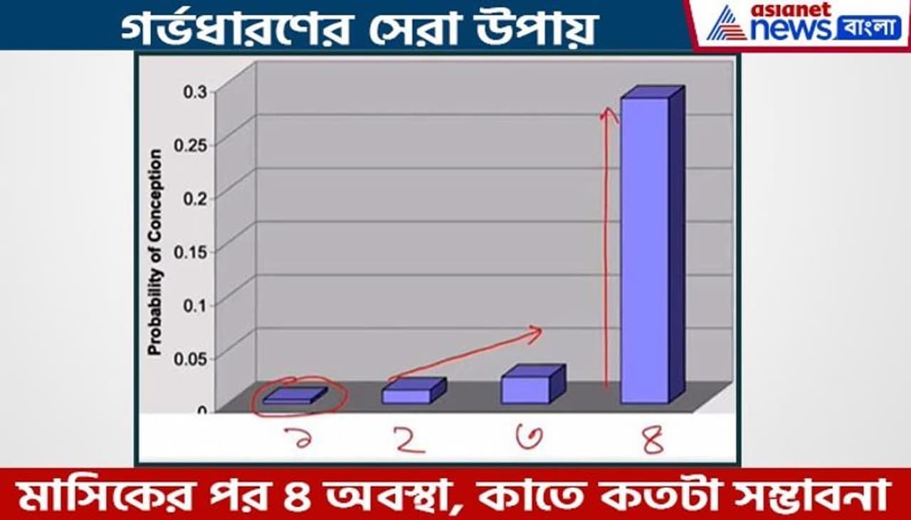 মাসিকের পর তৃতীয় অবস্থায় যখন একজন নারী প্রবেশ করবেন সেই সময় থেকেই সঙ্গমের সময় বাড়াতে হবে এবং লাগাতার চেষ্টা করে যেতে হবে। চতুর্থ অবস্থা চলাকালীন সহবাস করে যেতে হবে। এমনকী, চতুর্থ অবস্থা শেষ হওয়ার পর অন্তত ৩ থেকে ৪ দিন পর্যন্ত সহবাস চালিয়ে যেতে হবে। এর ফলে একটা ভালো খবর আশা করতেই পারেন।