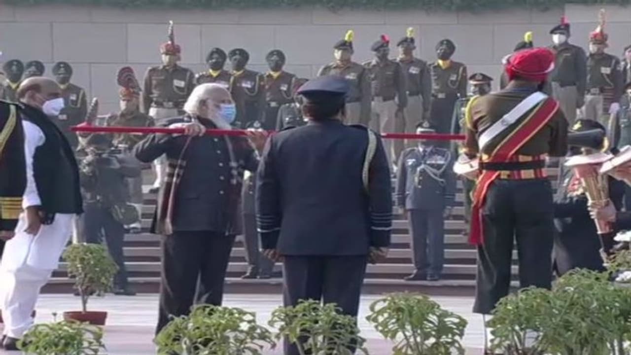 ১৯৭১ সালে ভারত-পাকিস্তান যুদ্ধ। সেই যুদ্ধে পরাক্রমের সঙ্গে যুদ্ধ করে জয় হাসিল করেছিল ভারতীয় সেনা। সেই যুদ্ধের ৫০ বছর পূর্তিতে বিশেষ অনুষ্ঠানের আয়োজন। সেখানে স্বর্ণ বিজয় মশাল জ্বালালেন প্রধানমন্ত্রী। উপস্থিত ছিলেন চিফ অফ ডিফেন্স স্টাফ। প্রতিরক্ষামন্ত্রী রাজনাথ সিং।