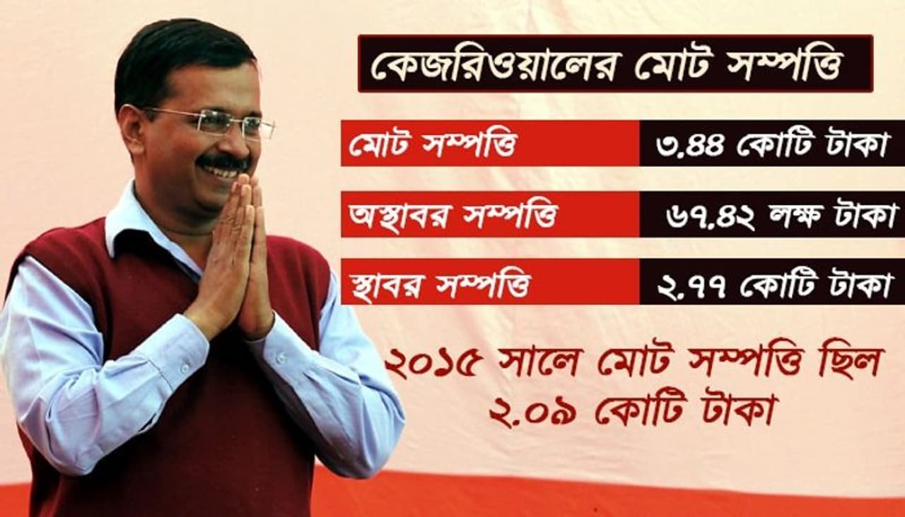 সম্পত্তির পরিমাণ পেশ করলেন অরবিন্দ কেজরিওয়াল দিল্লির মুখ্যমন্ত্রীর মোট সম্পত্তির পরিমাণ ৩.৪ কোটি টাকা ২০১৫ সালে সম্পত্তির পরিমাণ ছিল ২.১ কোটি টাকা ৫ বছরের আপ প্রধানের সম্পত্তি বেড়েছে ১.৩ কোটি
