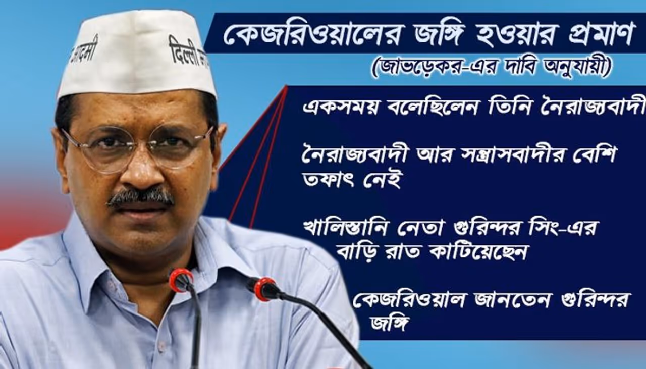 কী প্রমাণ দিলেন তিনি? দিল্লির বিজেপি প্রধান মনোজ তিওয়ারি এবং জুনিয়র অর্থমন্ত্রী অনুরাগ ঠাকুরকে নিয়ে এদিন এক সাংবাদিক সম্মেলন করে জাভড়েকর বলেন, কেজরিওয়াল বলেছিলেন তিনি নৈরাজ্যবাদী। তাঁর মতে একজন নৈরাজ্যবাদী ও সন্ত্রাসবাদীর মধ্যে খুব একটা পার্থক্য নেই। এছাড়া পঞ্জাব বিধানসভা নির্বাচনের সময় কেজরিওয়ালের খালিস্তানি সেনাপতি গুরিন্দর সিং-এর মোগা-র বাড়িতে রাত কাটাবার বিষয়টিও তুলে ধরেন। তাঁর দাবি জঙ্গিদের বাড়ি জেনেও কেজরিওয়াল সেখানেই থাকেন। জাভড়েকরের প্রশ্ন, এর থেকে বেশি আর কি প্রমাণ লাগবে?