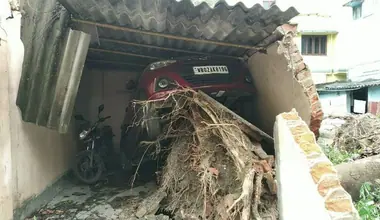 ঝড়ের তীব্রতা সর্বোচ্চ পর্যায়ে পৌঁছনোর আগেই হাওড়ায় একটি স্কুলের টিনের চাল পোস্টকার্ডের মতো উড়ে গিয়েছিল।