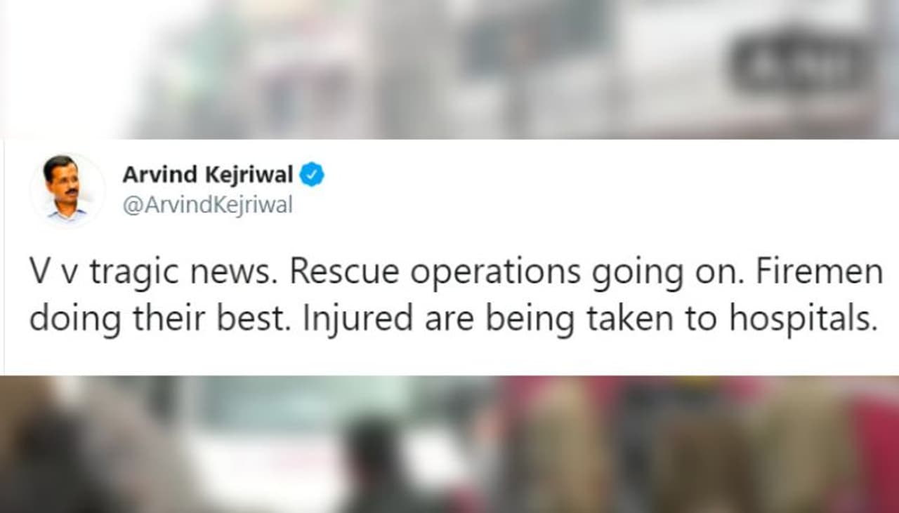 শোকপ্রকাশ করেছেন দিল্লির মুখ্যমন্ত্রী অরবিন্দ কেজরিওয়াল-ও। তিনি টুইট করে বলেন, 'অত্যন্ত দুঃজনক ঘটনা। উদ্ধারকাজ চলছে। দমকলকর্মীরা যথাসম্ভব চেষ্টা করছেন। আহতদের হাসপাতালে নিয়ে যাওয়া হচ্ছে।'