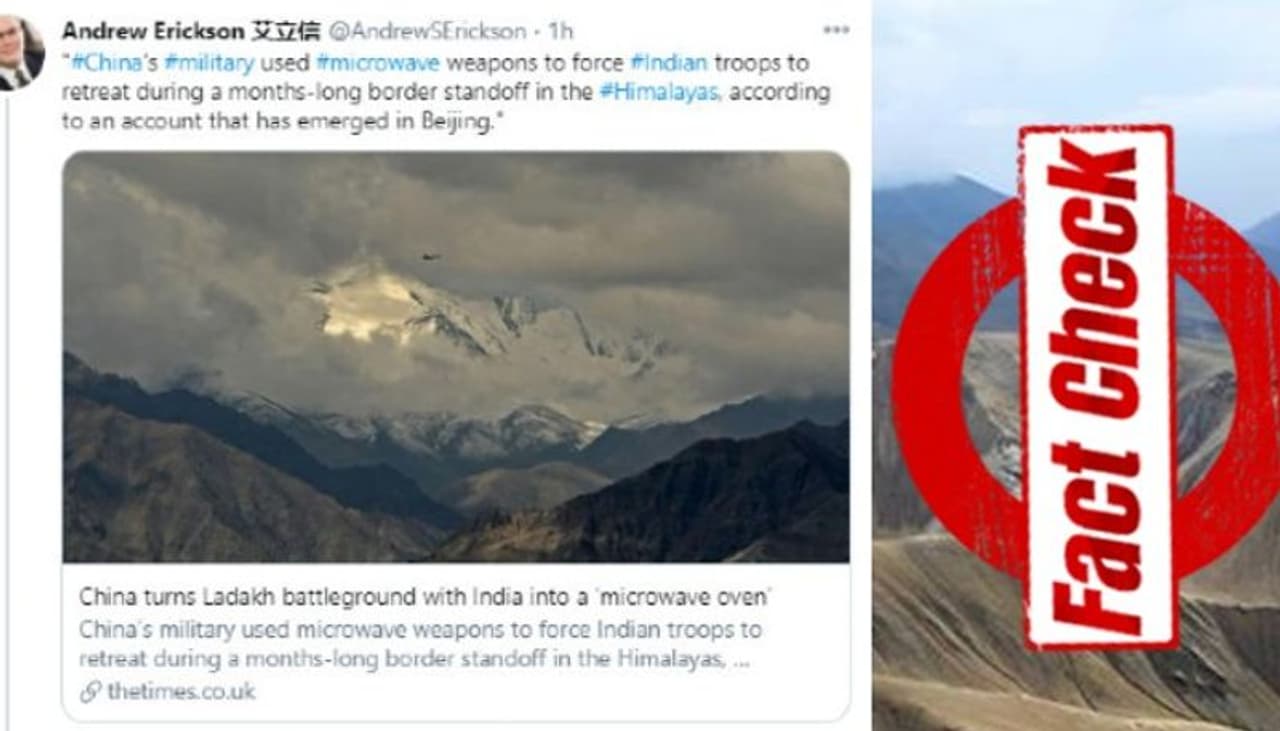 লাদাখ চিন মাইক্রোওয়েভ অস্ত্র ব্যবহার করছে ব্রিটিশ সংবাদপত্রে দাবি চিনা অধ্যাপকের চিনা অধ্যাপকের দাবি উড়িয়ে দিল ভারত সম্পূর্ণ মিথ্যা দাবি করা হচ্ছে বলে সওয়াল