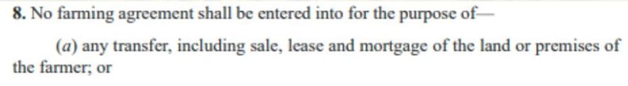 এটা অসম্ভব এবং কৃষকরা এই আইনে সুরক্ষিত থাকবে। রেফার পয়েন্ট নং ৮-এ এটা আছে।