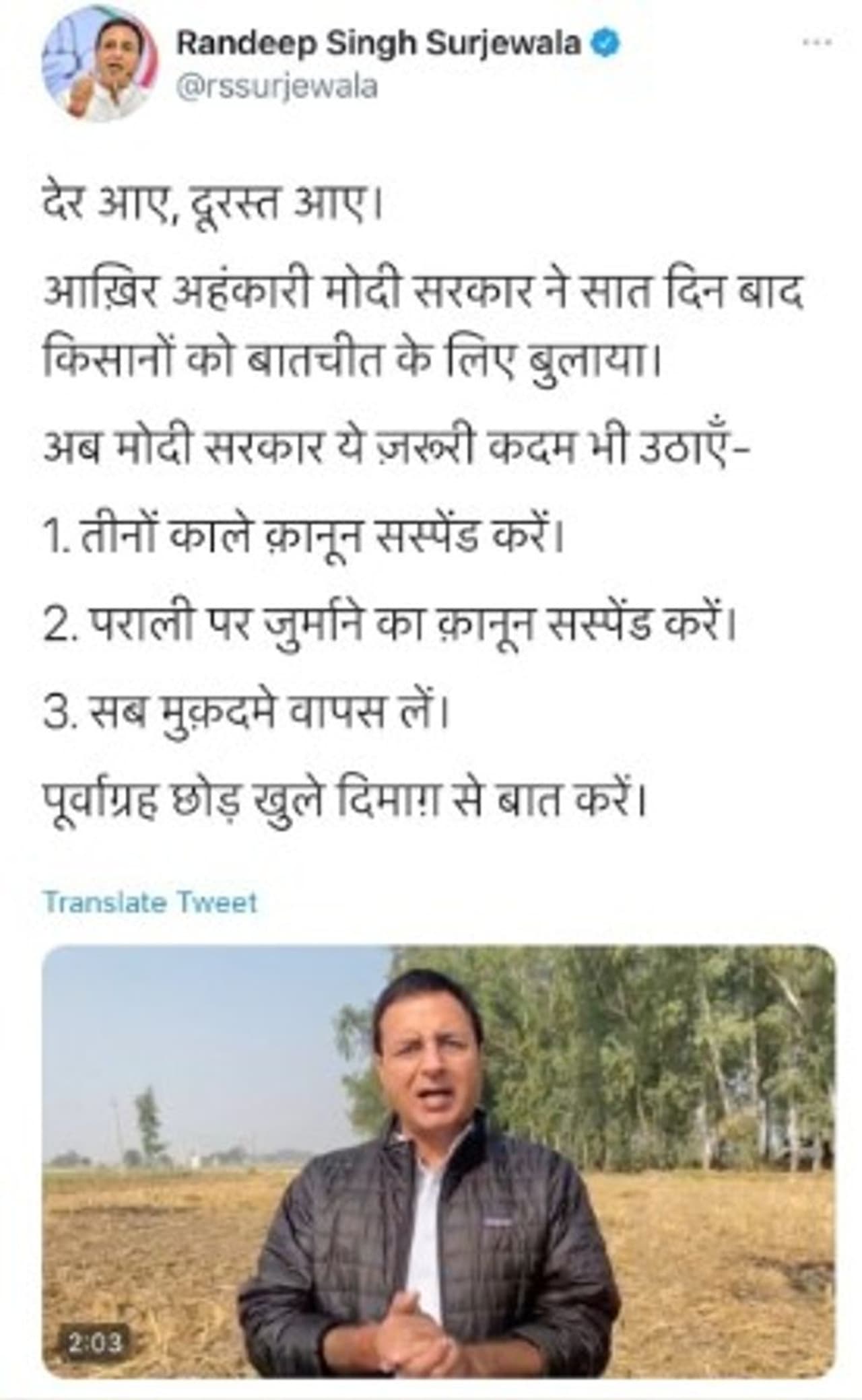 কংগ্রেস নেতা রণদীপ সুরজেওয়ালা খড় পোড়ানোকে সমর্থন করছেন, যখন তার দল এর জন্য কান্নাকাটি করছে। তারা এখন এটি সমর্থন করছে কারণ এটা তাদের রাজনীতিকে সাহায্য করবে এবং ‘পাপ্পু’ তার কেরিয়ার শুরুর আরেকটি সুযোগ পাবেন!